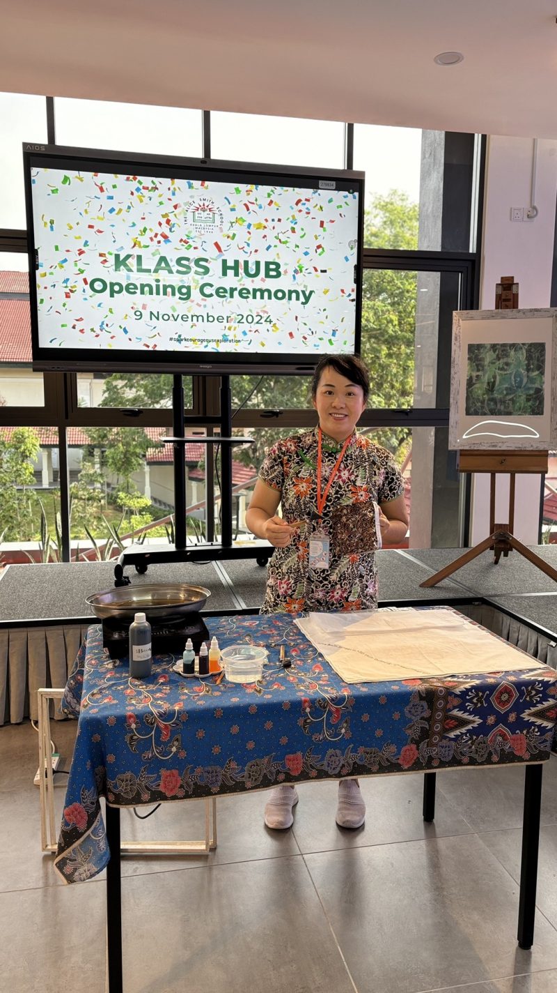 Batik Artist Emilia TanBatik Lesson KLBatik Painting CompetitionCorporate Team BuildingmyBatik Workshop Alice Smith Secondary School KLASS Hub Opening Ceremony cum launching of the Alice Smith Official Batik Design! November 9, 2024 admin #batikworkshop #蜡染体验 #myBatik