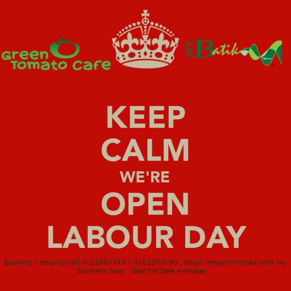 myBatik WorkshopPress Media WE OPEN ON LABOUR DAY. business as usual 8am till 5pm, enquiry call 0162203190 / 0123887343 or email: tmsart@tmsart.com.my April 30, 2016 admin