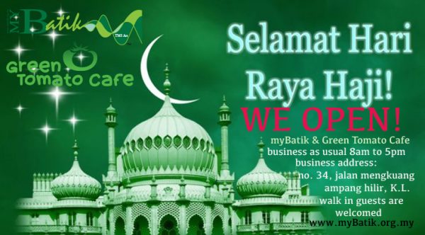 myBatik WorkshopPress Media WE OPEN ON RAYA HAJI HOLIDAYS! business as usual 8am to 5pm. walk-in guests are welcomed August 10, 2019 admin